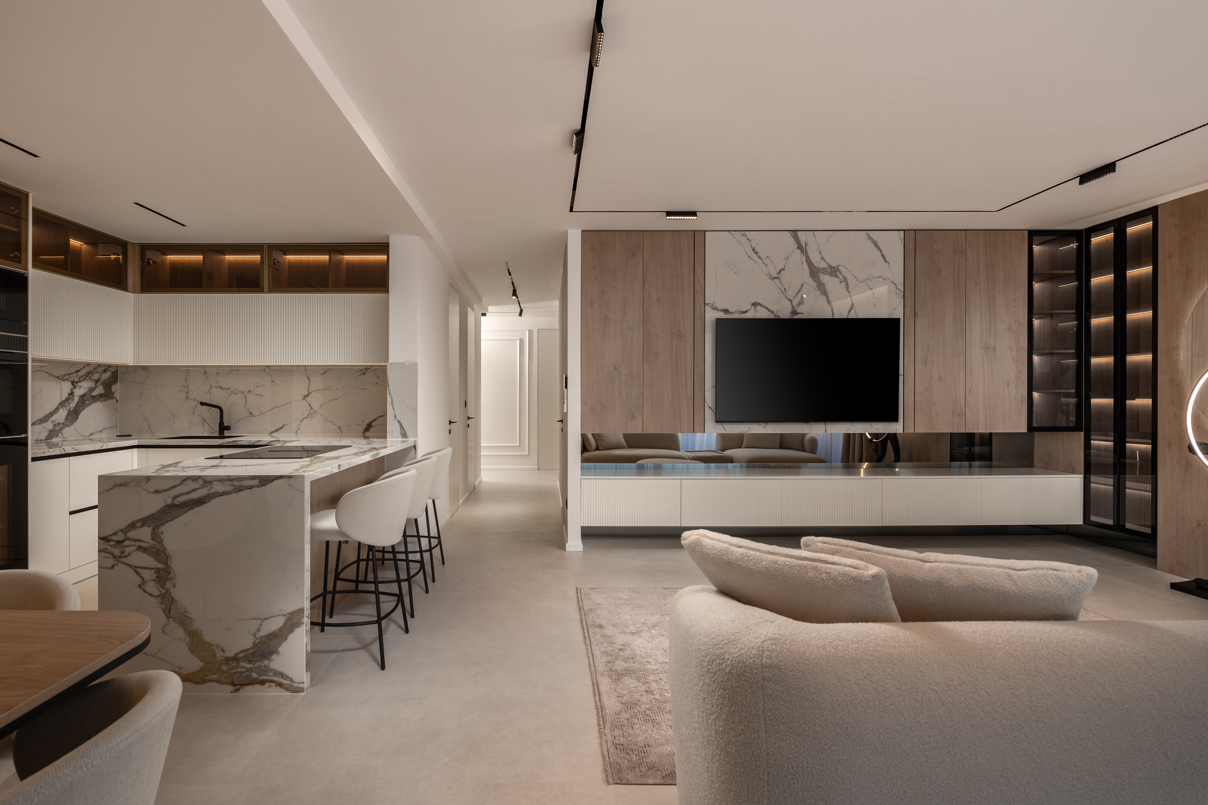 Apartment A4 is an elegant second-floor residence offering 178 m² of refined living space. A grand open-plan living and dining area flows onto a 27 m² terrace, where panoramic sea views set the stage for unforgettable moments.