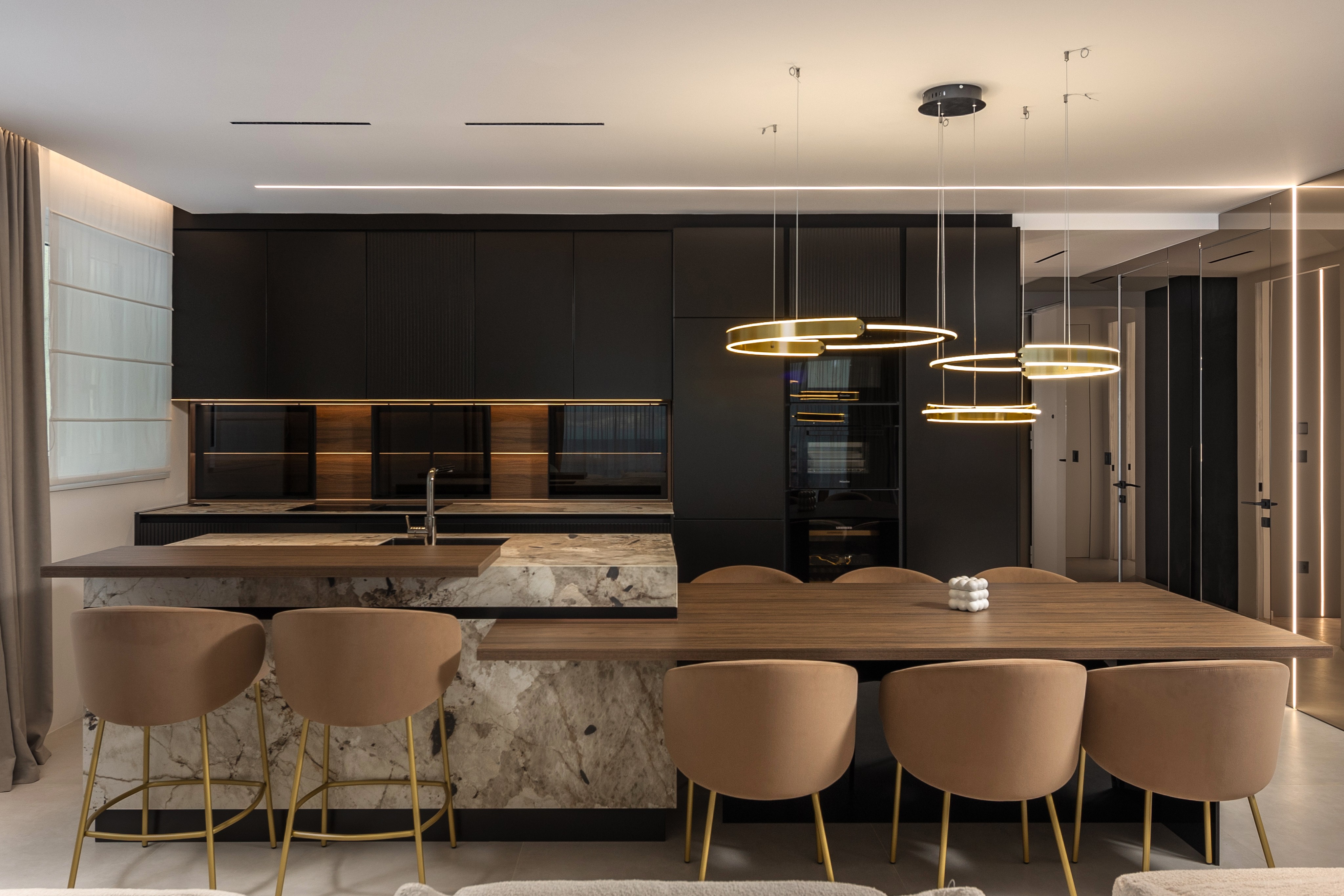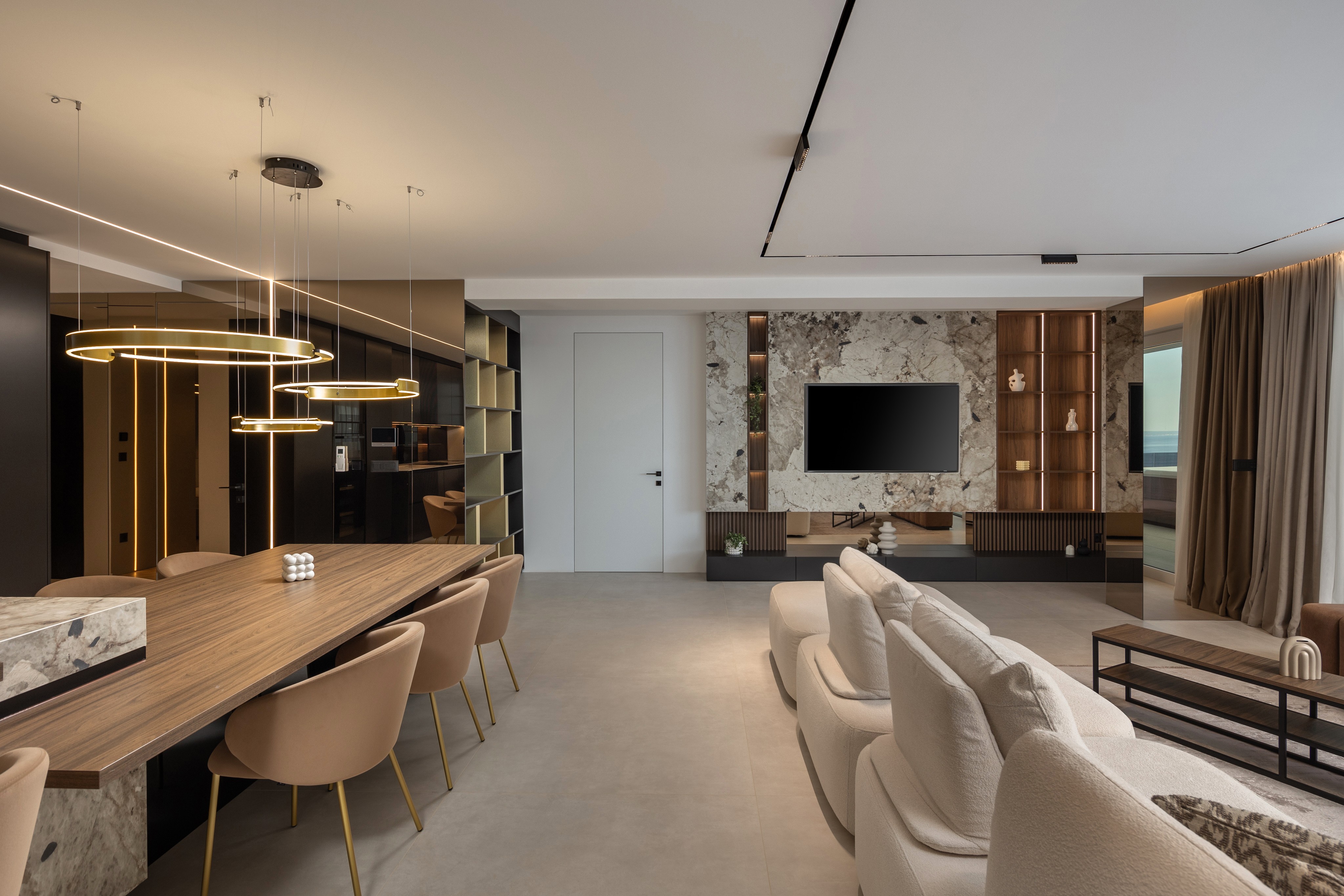 The centerpiece is a 57 m² open-plan living, dining, and kitchen area that opens onto a spacious balcony — ideal for enjoying sea breezes and panoramic sunsets. Three bright bedrooms, including a master suite with its own bathroom and dressing room, ensure both privacy and comfort. Two additional bathrooms, a guest WC, and practical utility and storage rooms complete the thoughtful layout.
