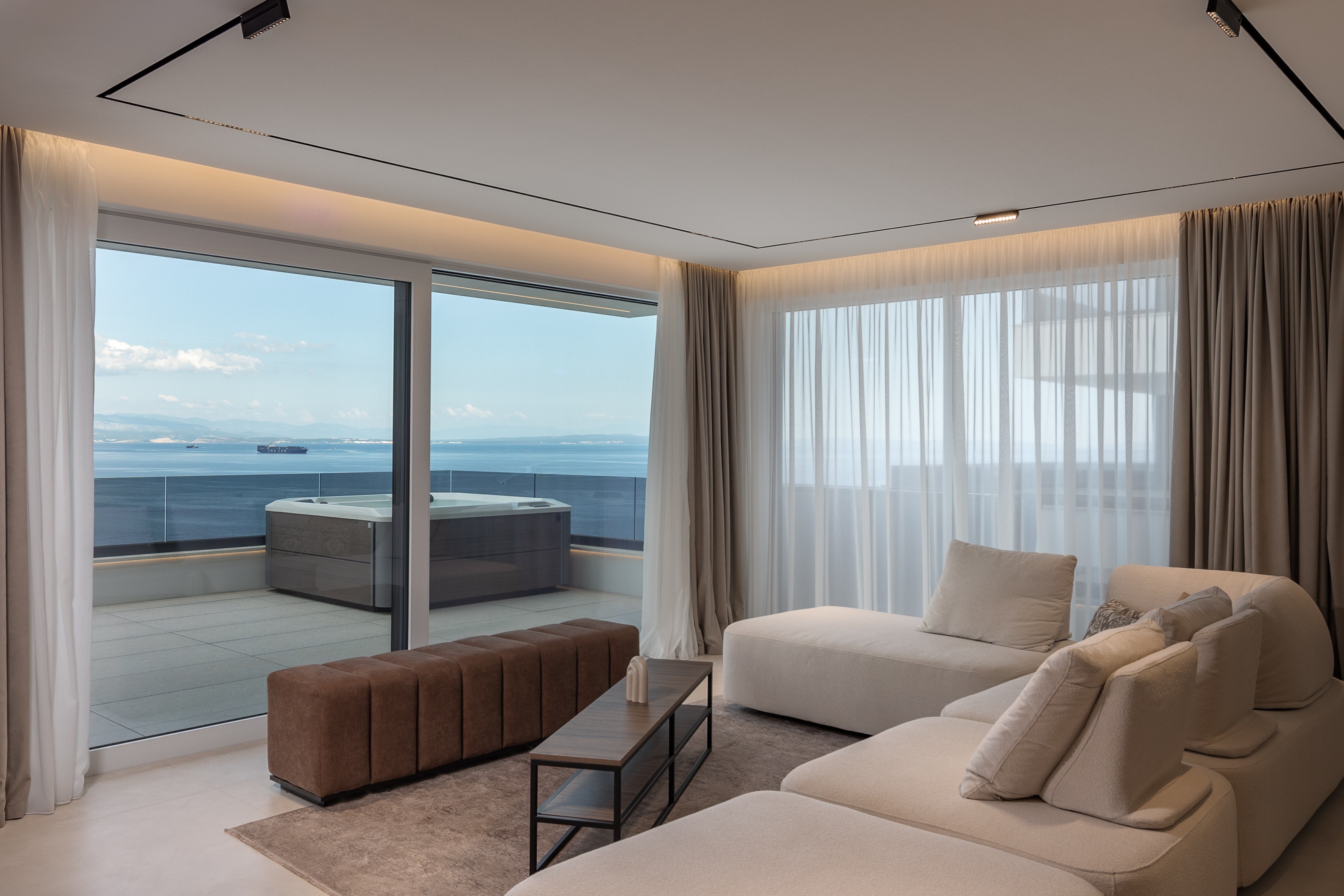Set in a quiet street just 250 meters from the sea, the residence combines seclusion with convenience – close to Opatija’s vibrant center, yet perfectly positioned to ensure peace and privacy. From its elevated location, S1 offers panoramic sea views, allowing every day to begin and end with the horizon of the Adriatic.