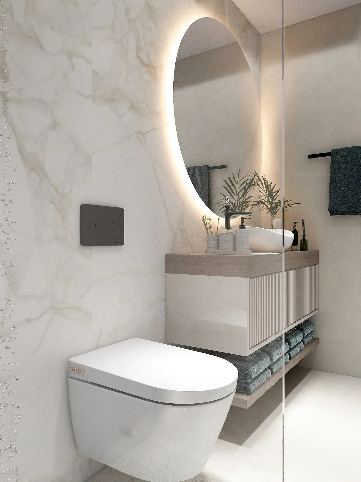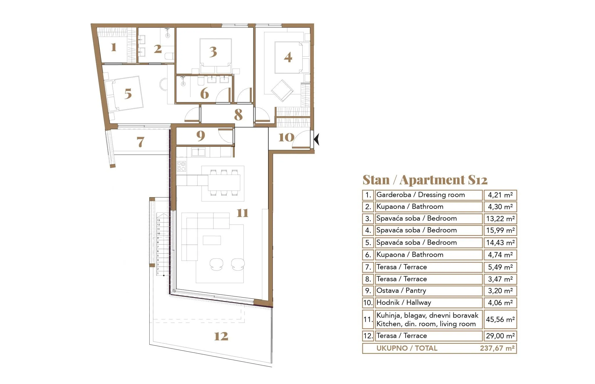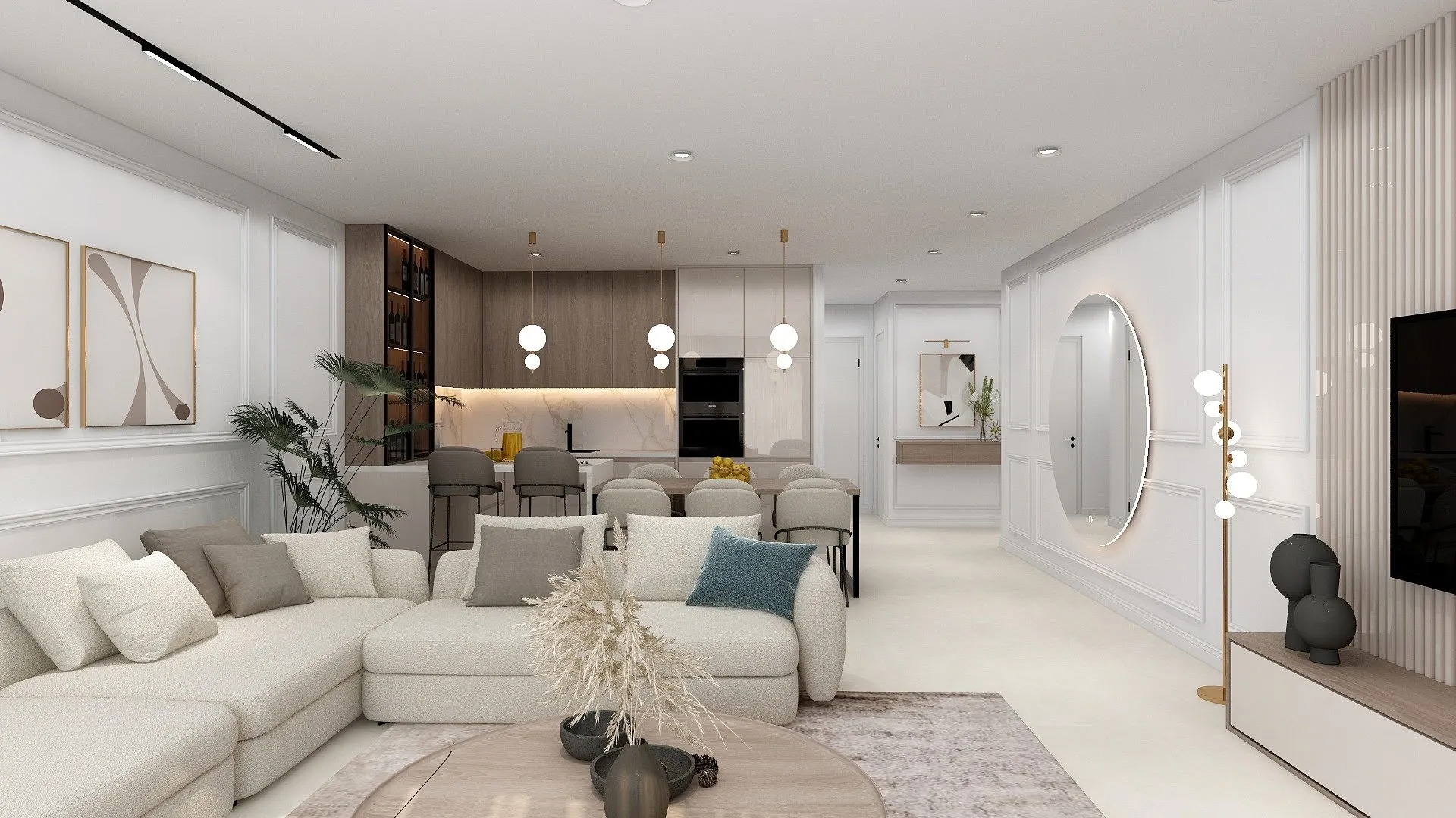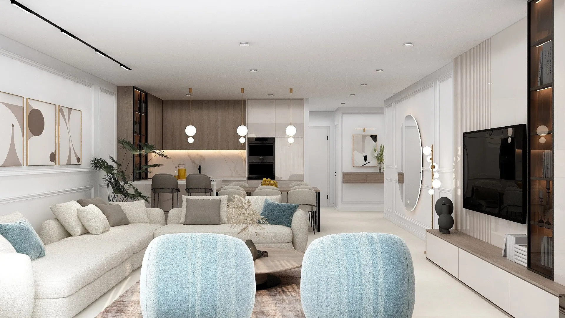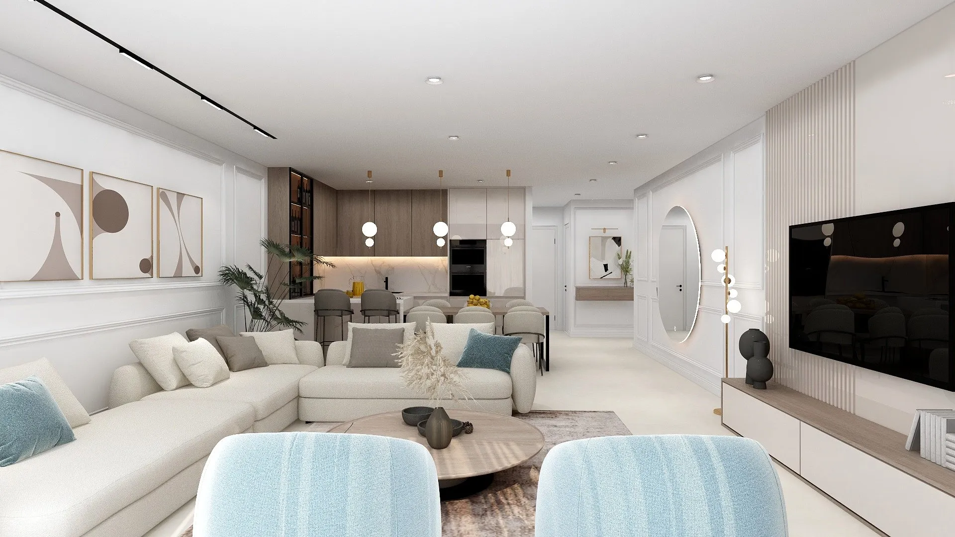 The building was designed in a high-quality and architecturally functional, modern approach, with wide sliding walls and spacious terraces on the southern facade facing the city. The architectural design and the construction materials that will be used are in line with the construction method of the buildings in the settlement. It has a split floor plan with deep and wide terraces with glass walls.