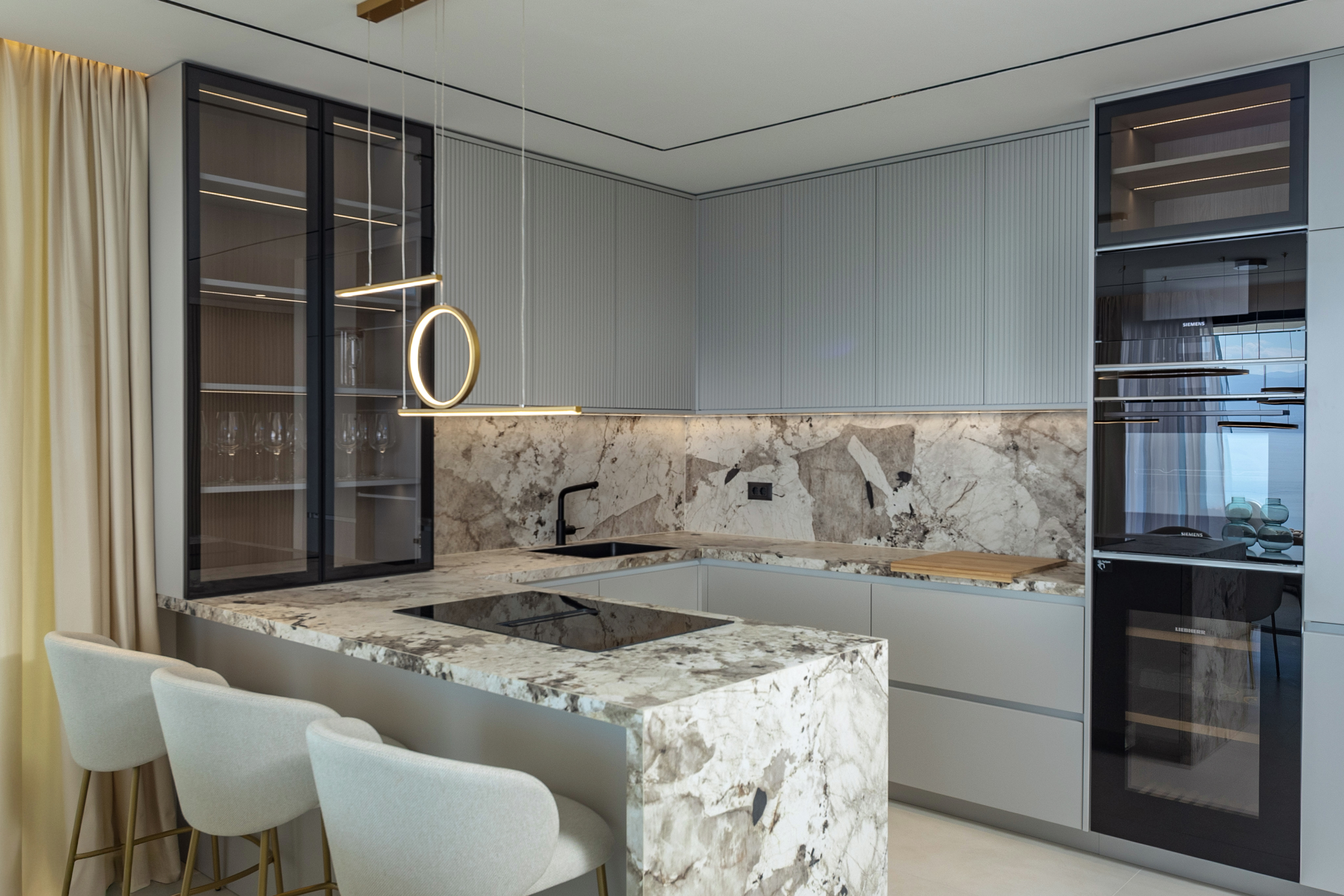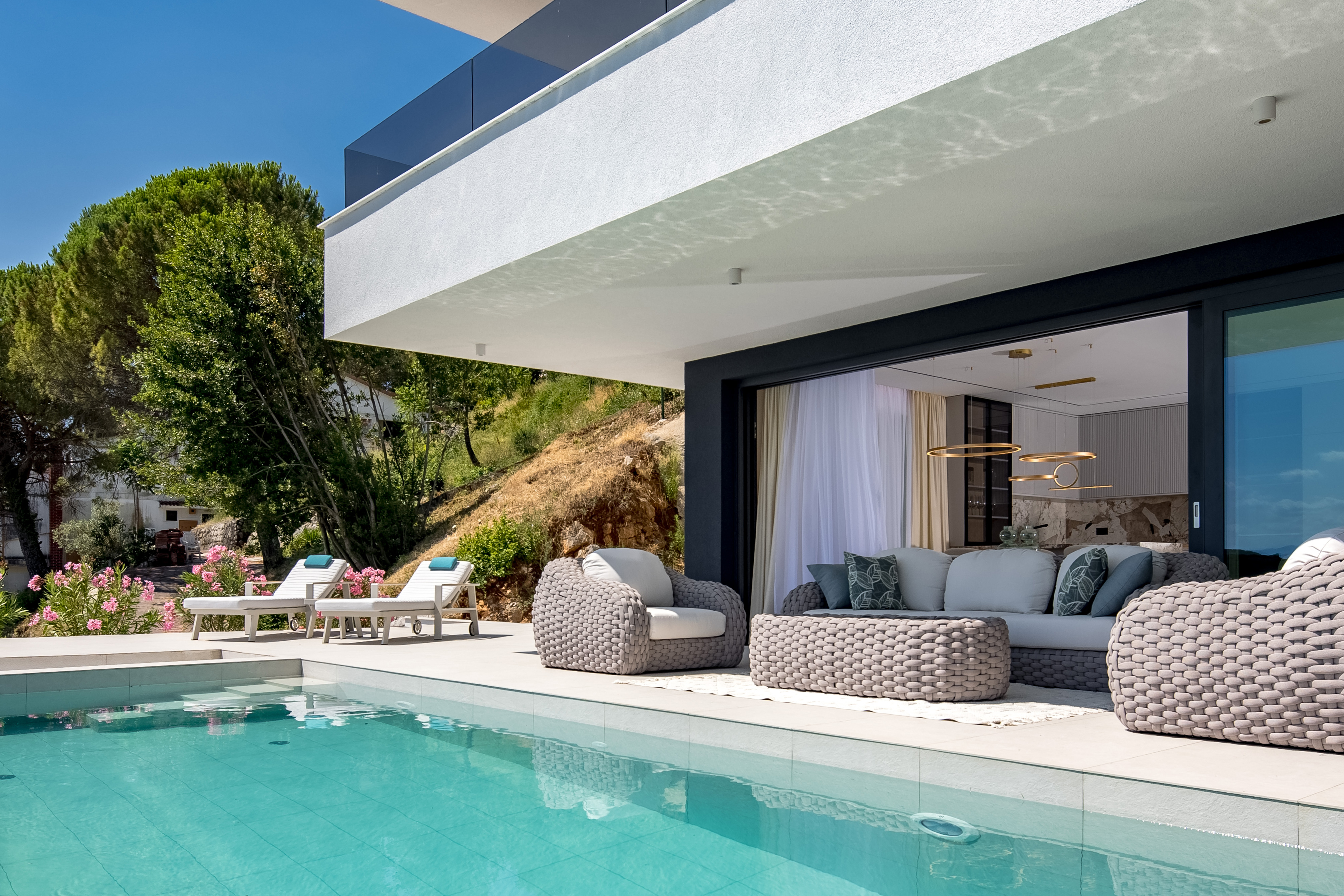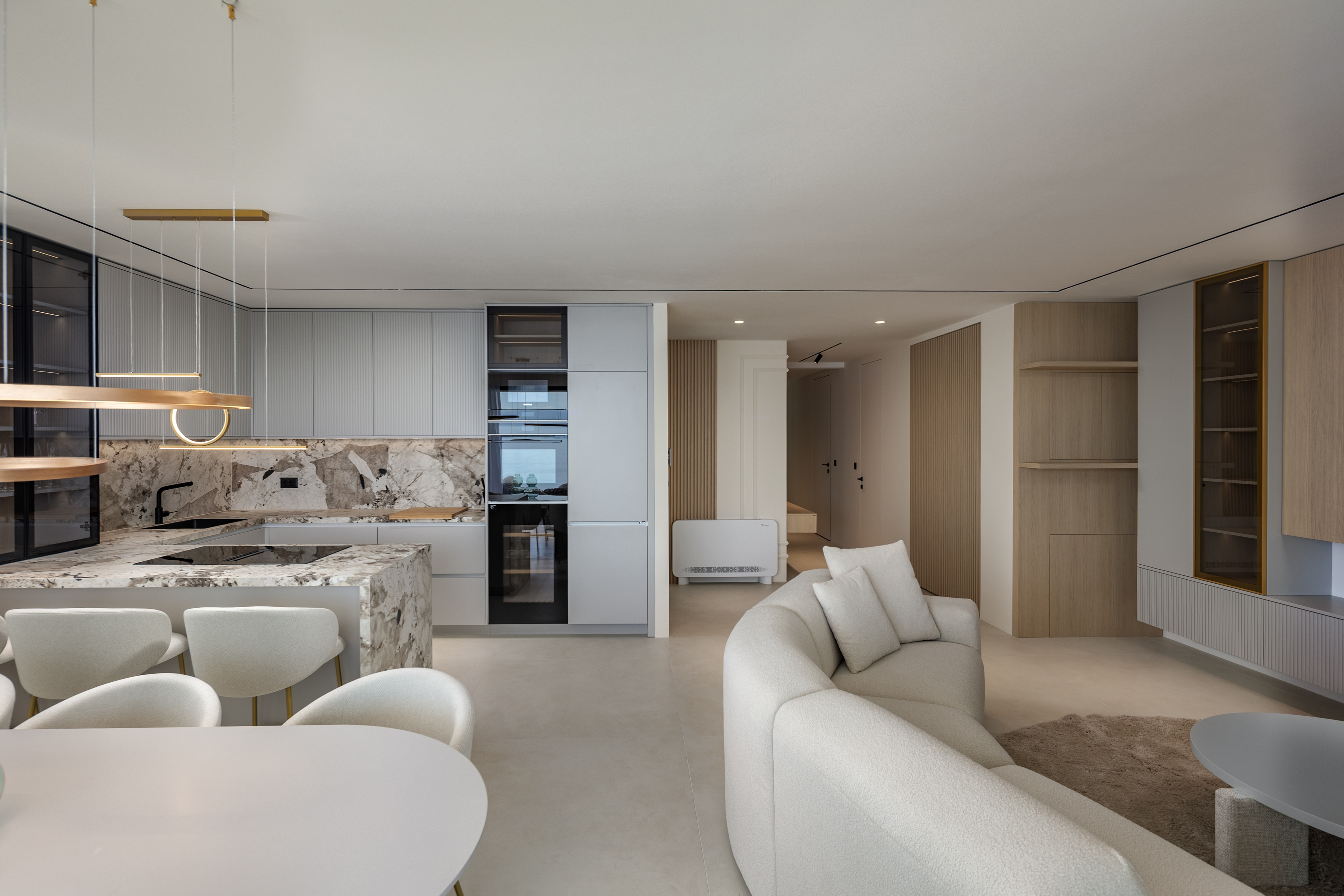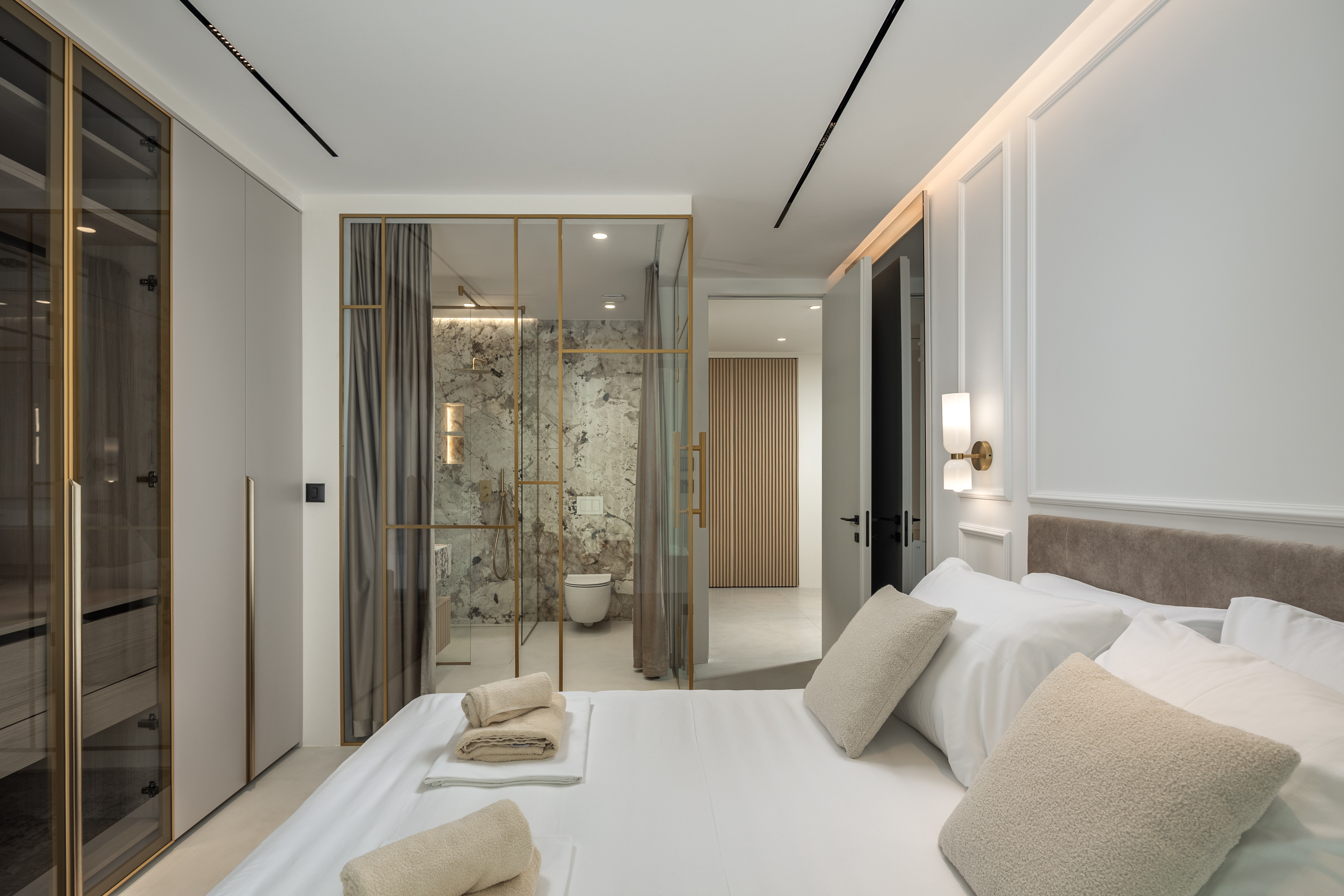 Vista Magica is a bright three-bedroom, three-bathroom apartment where modern comfort meets the Adriatic coast. Expansive windows fill the interiors with natural light, leading to a private terrace with sweeping sea views. A shared swimming pool and landscaped surroundings create a relaxed, resort-style atmosphere.